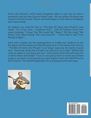 Geral John Pinault’s 127th Guitar Songbook takes us over the top with a wonderful ride into Pop-Country Music Land! He has written 20 brand new Pop-Country Songs for Rhythm Guitar Players and Lead Singers in this fabulous Songbook plus a bonus song!